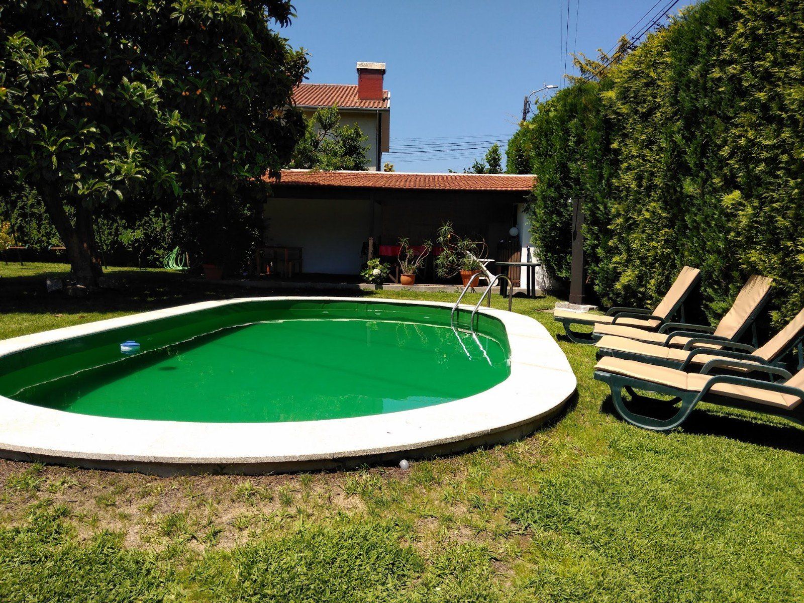 - O hóspede, tem ao seu dispor um amplo espaço verde, relvado, com piscina, cozinha exterior com barbecue, frigorífico, fogão, lavatório e louça variada.